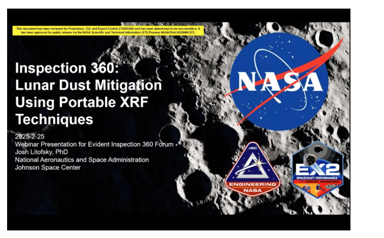 在Evident Scientific主办的《Inspection 360》网络研讨会上,NASA约翰逊航天中心专家Josh Litofsky博士,分享了便携式XRF技术的解决方案。他指出,传统重量检测法流程繁琐、精度不足,无法满足太空任务要求,而便携式XRF分析仪快速、精准、无损,结构坚固、操作便捷,适配废金属分拣与采矿等领域,可快速输出元素分析结果。
