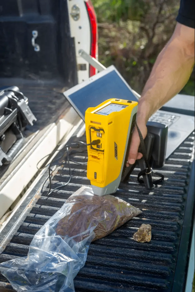 (配图说明:Vanta Max X 射线荧光光谱仪在现场分析土壤样品)