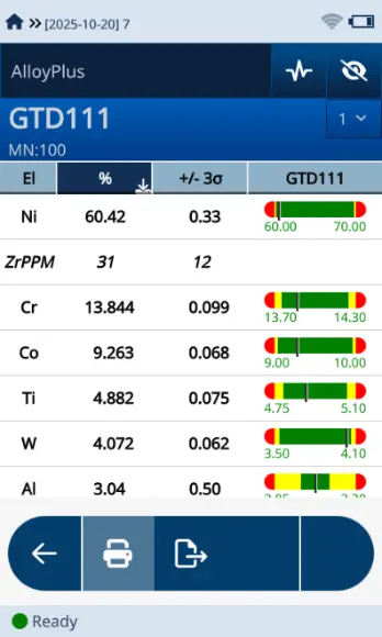 锆元素以 ppm 级别痕量添加至镍基高温合金中,虽含量低微,却对合金微观组织与力学性能具有决定性影响 —— 可强化晶界、提升抗蠕变性、实现熔体净化并促进碳化物形成,直接关系最终制品的高温服役安全性与可靠性。其控制精度要求极高:含量不足会导致晶界强度薄弱、抗蠕变性下降,无法适配热端部件严苛工况;含量过高则易引发热裂、合金脆化、干扰 γ' 强化相析出等致命问题,最终导致部件高温失效。行业实测数据显示,GTD-111 合金锆标准值 30ppm,实测需控制在 31ppm±12ppm;Waspaloy 合金锆标准值 600ppm,实测需稳定在 635ppm±32ppm,痕量精准控制的重要性不言而喻。