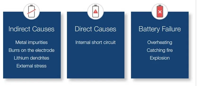 大多数锂离子电池事故由短路引发。内部短路指的是电池内部正负极之间意外接触的情况。
