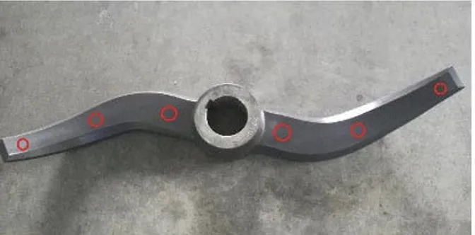 刀片上的红色圆圈表示供应商C需要测试的位置。合金表面涂覆了碳化钨。如果测试中检测到铁或铜等金属元素,则测试刀片未达到要求。经验表明,厚度至少50微米的碳化钨可以满足这些要求。