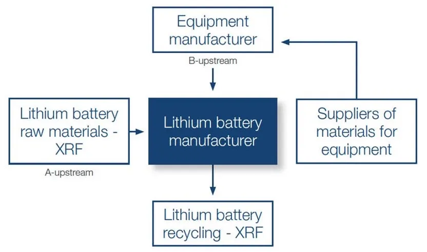 制造商A的原材料供应商和电池制造设备供应商也需要完成这项工作,确保整个供应链(上下游)遵循相同的测试标准。因此,制造商A的原材料供应商B购买了多台手持XRF分析仪以进行类似的质量控制工作。