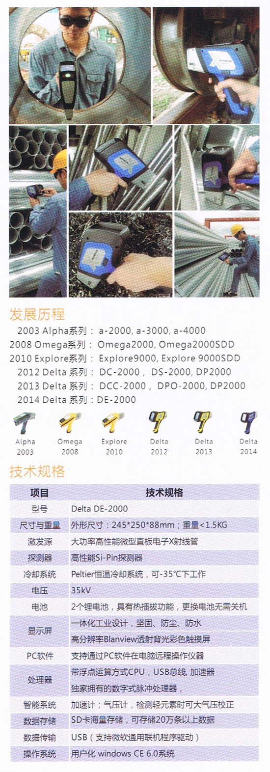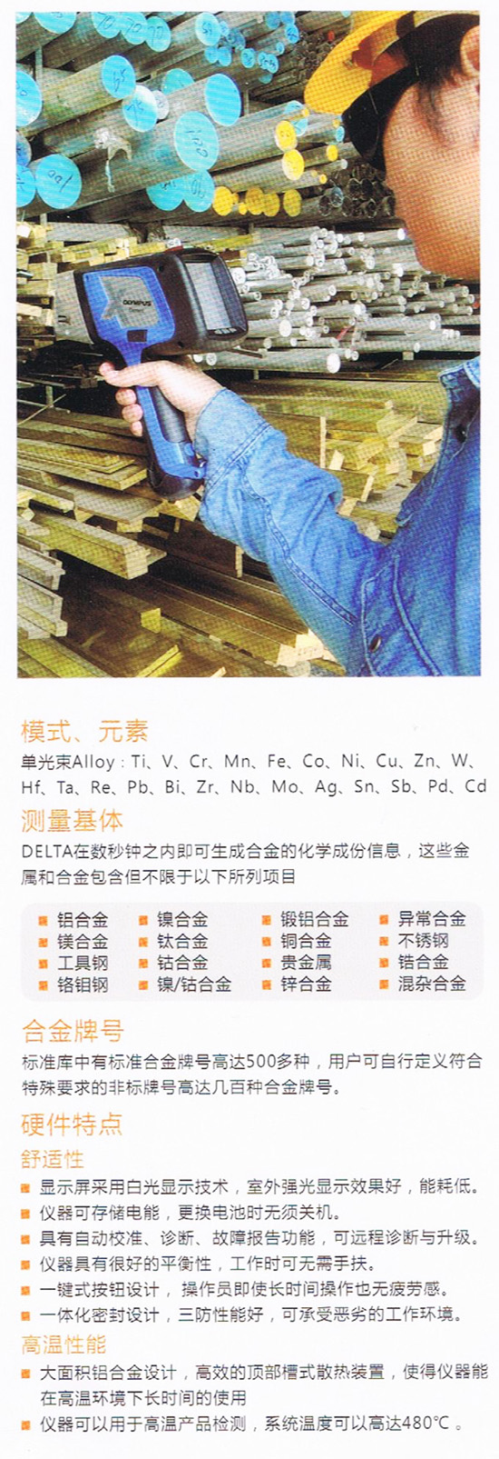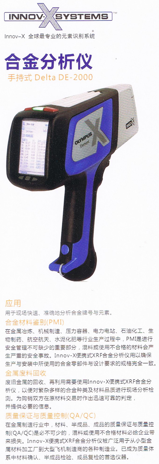 合金分析仪 DE-2000用于现场快速、准确的分析合金牌号于元素。